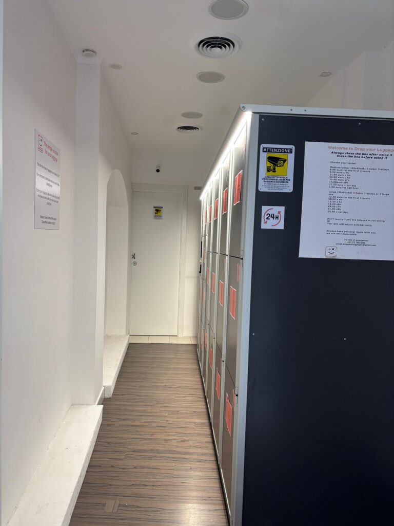 Puoi depositare i tuoi bagagli nei nostri armadietti 24 ore su 24, 7 giorni su 7